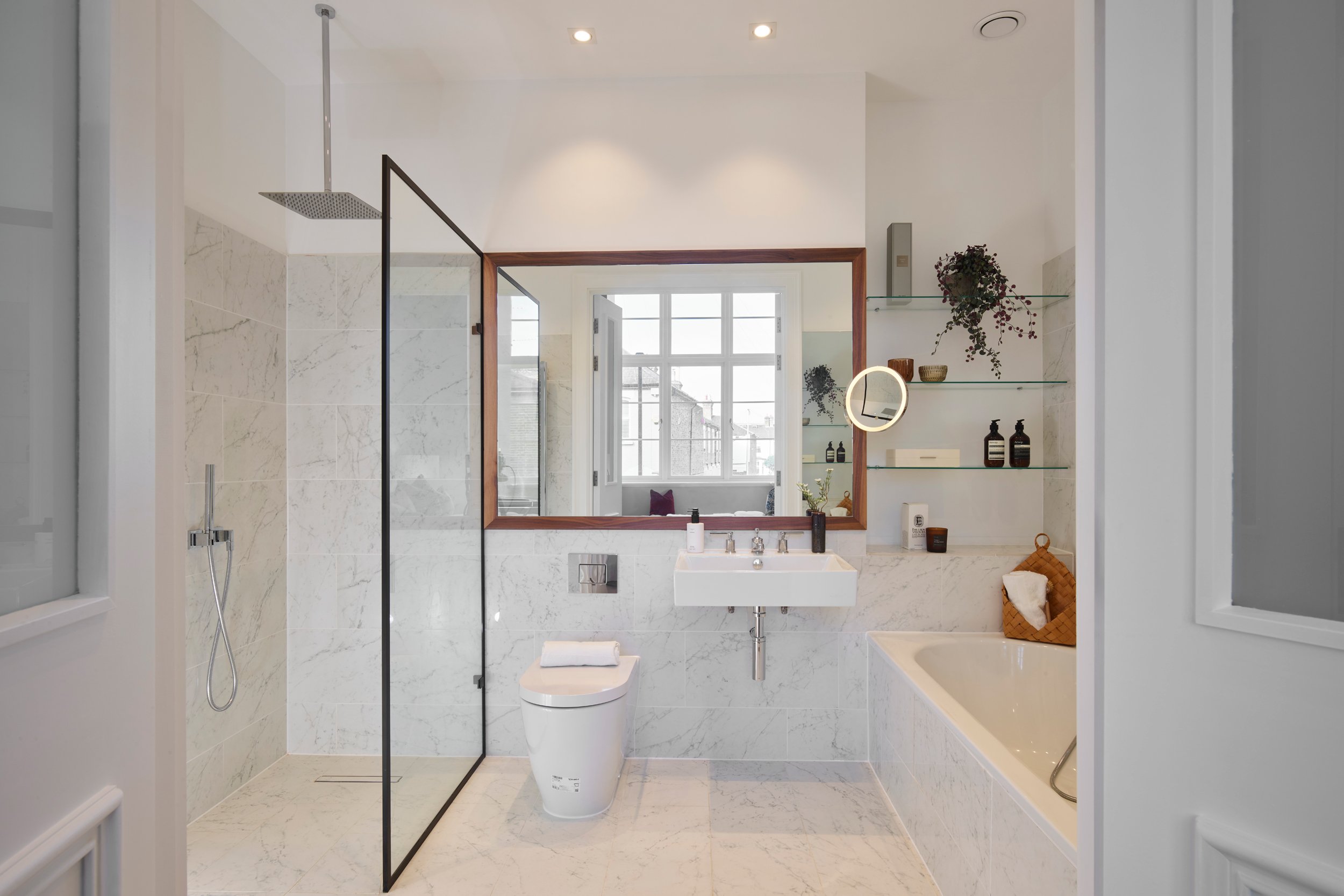 Both the en-suite and the guest shower room are finished to the highest standards featuring smooth Carrera marble and contemporary fixtures from leading brands.